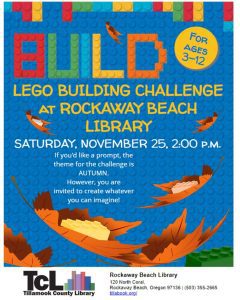 « All Events This event has passed. Lego Building for Kids at the Rockaway Beach Library November 25, 2023 @ 2:00 pm - 3:00 pm « HOLIDAY SALE at the Rockaway Beach Library Rockaway LEGO Building Challenge » Add to calendar Google Calendar iCalendar Outlook 365 Outlook Live Details Date: November 25, 2023 Time: 2:00 pm - 3:00 pm Organizer Friends of Rockaway Beach Library Venue Rockaway Beach Library 120 N Coral Street Rockaway Beach, 97136 United States + Google Map Phone 503-355-2665